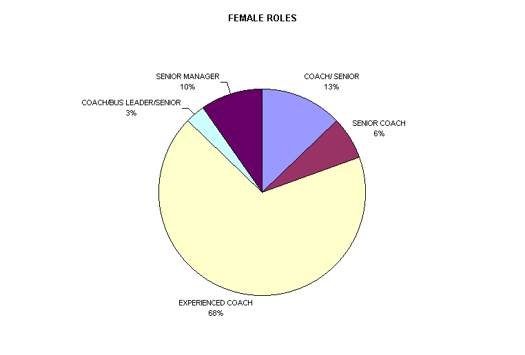 Most respondents saw themselves as Experienced Coaches, some having multiple roles involving management and business leadership, N=56 (91%), the majority being women, N = 28 (68%) Only 5 respondents did not identify primarily with coaching.
